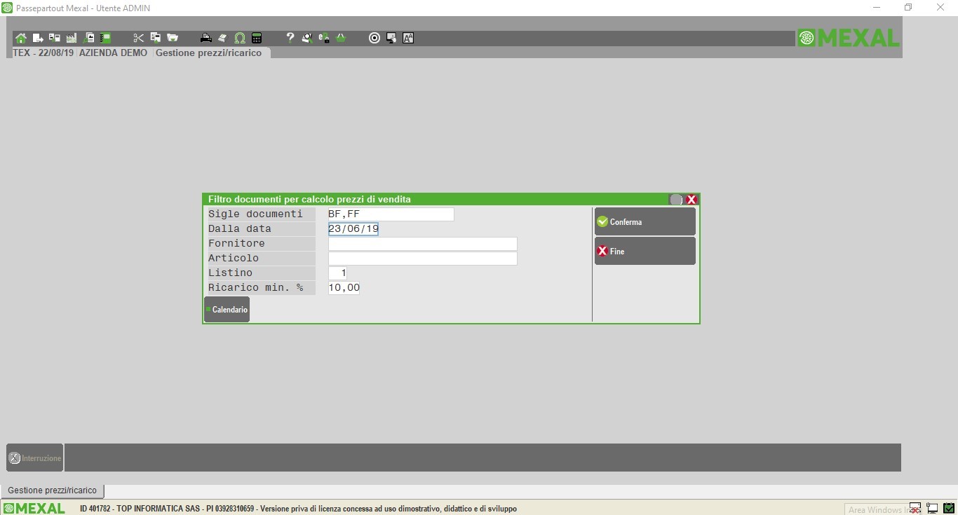 prezzi di listini come pure monitorare la % di ricarico/margine sugli articoli