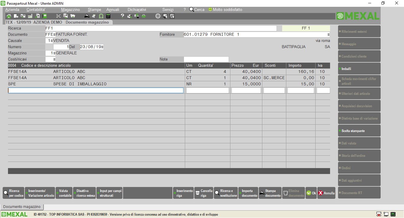 applicazione l’APP crea una particolarità di tipo ‘P’rezzo per memorizzare