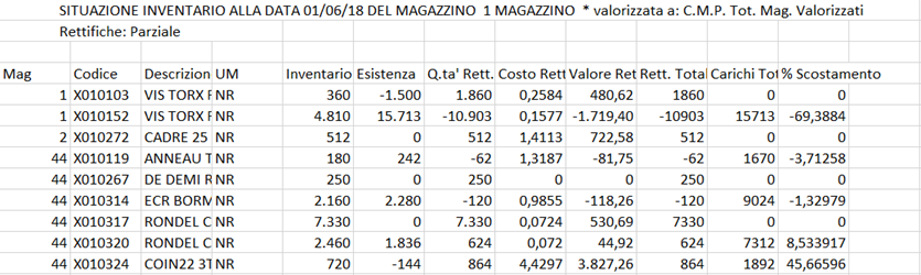 Il programma gestisce le rettifiche di inventario gestite manualmente o da file csv, sia in caso di gestione magazzino standard che a lotti.