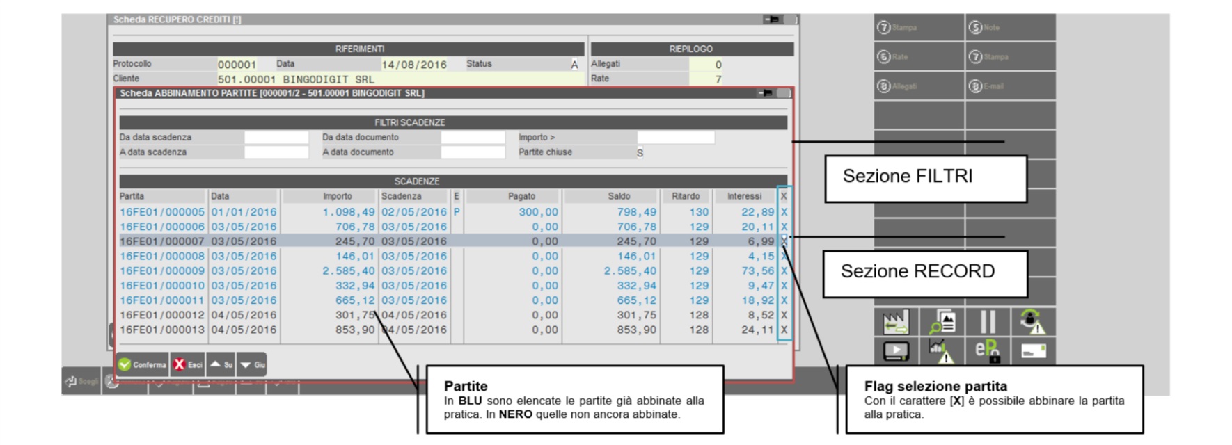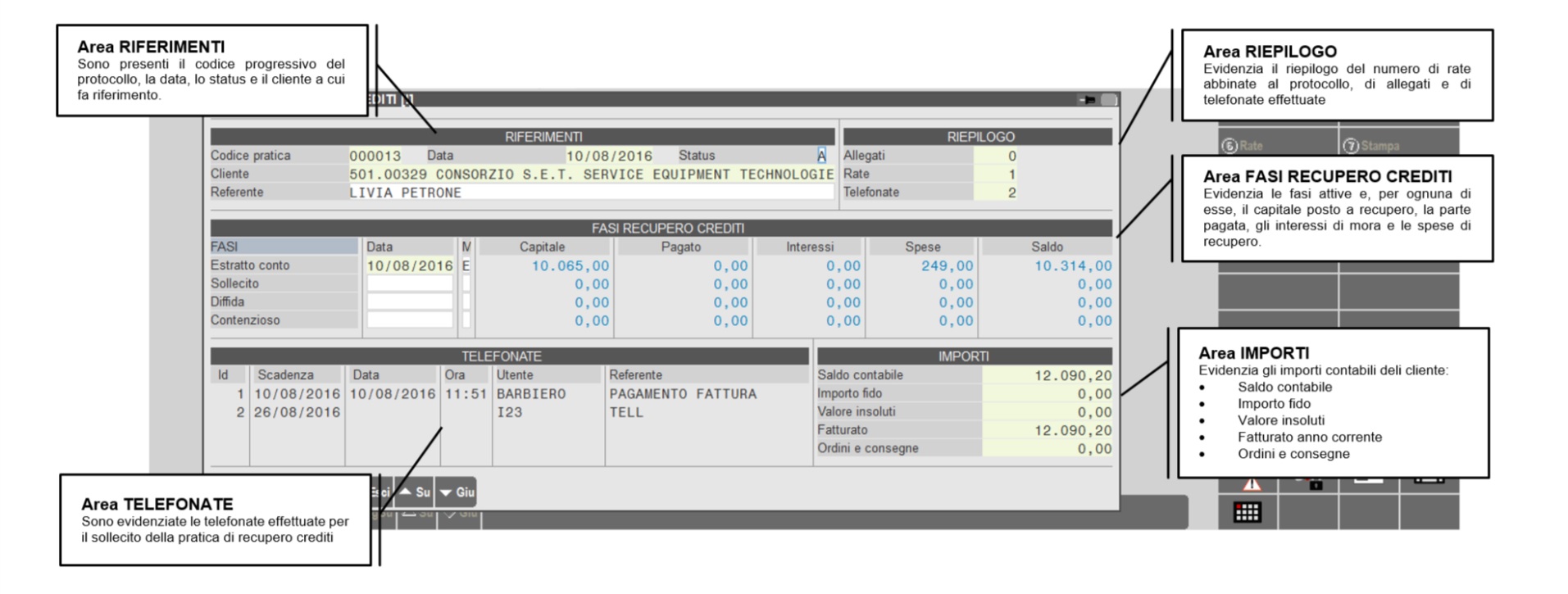 - Con la procedura di RECUPERO CREDITI è possibile verificare l’efficienza delle procedure aziendali volte al recupero dei crediti scaduti.