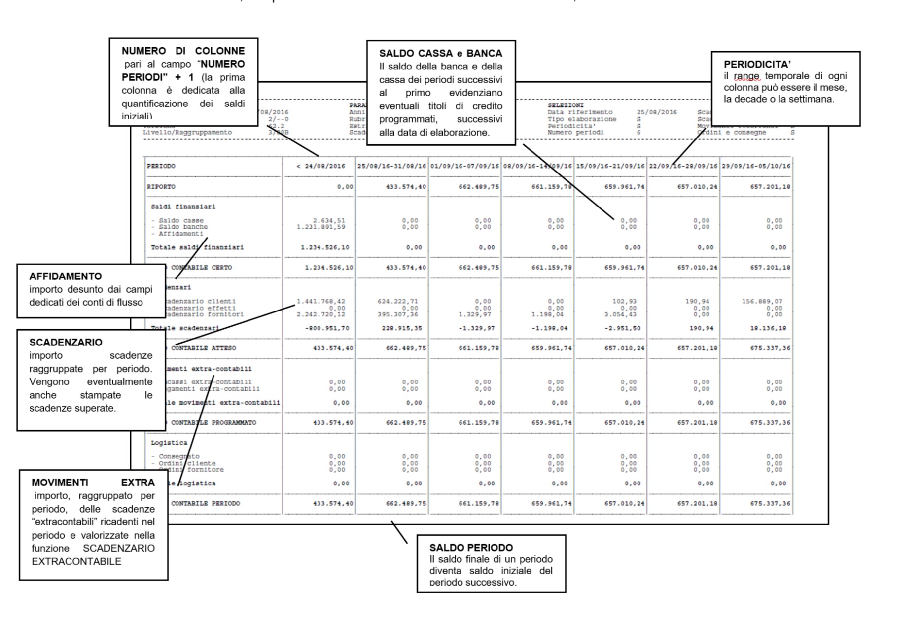 - Con la procedura di CASH-FLOW è possibile avere una visione anticipata dei flussi finanziari, attraverso la gestione di movimenti certi, attesi, provvisori, e stimati, che rappresentano le previsioni di incassi e pagamenti dell’azienda;