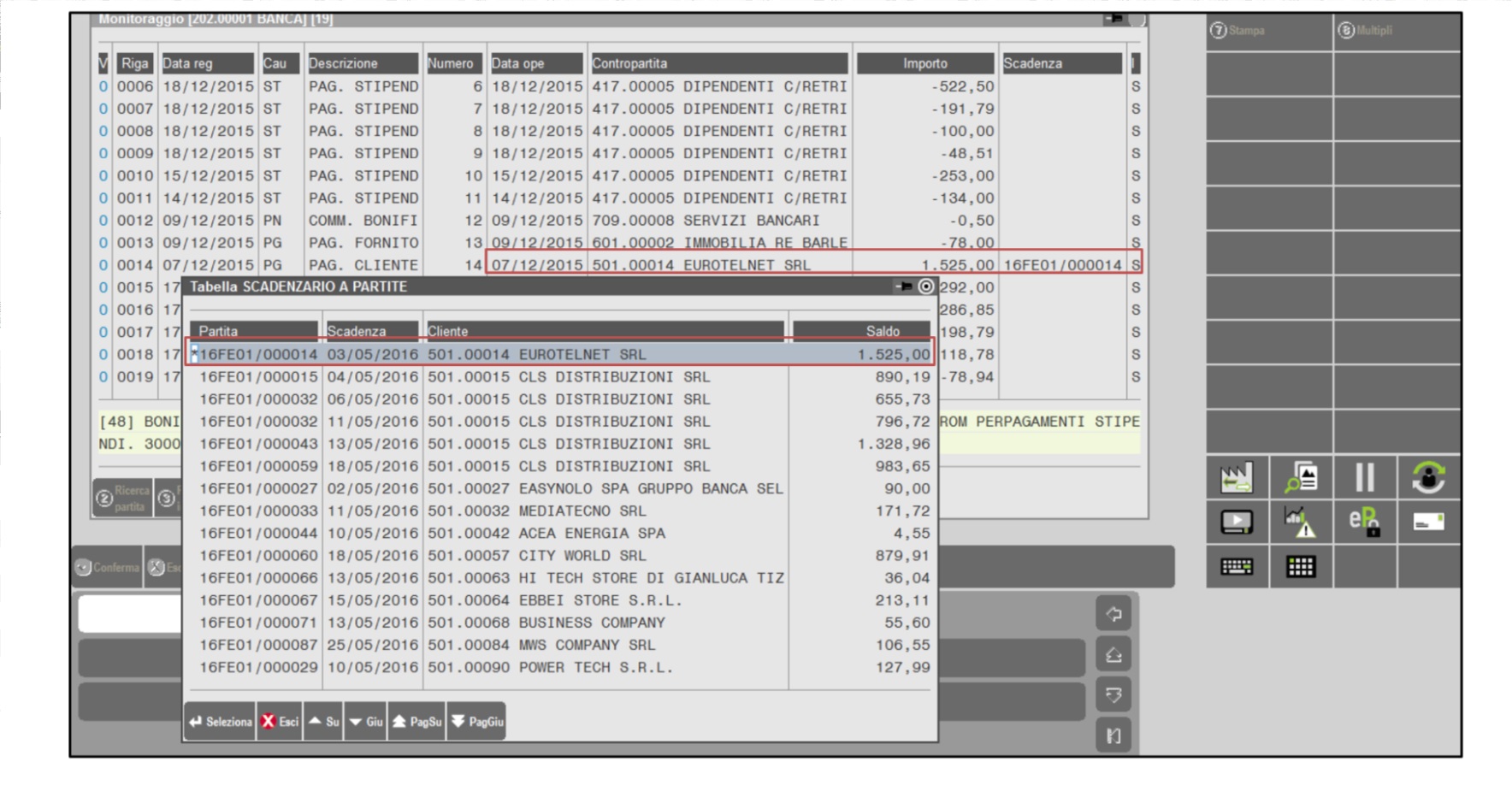 La procedura consente di gestire l'iter del recupero crediti, dei mandati di pagamento, del cash-flow e degli estratti conto