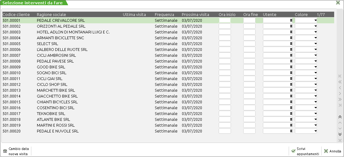 L’applicazione “Giro Visite su Agenda” in base alla frequenza delle visite e alla data ultima visita, memorizzate sull'anagrafica Clienti, è in grado di generare appuntamenti sull’agenda di Mexal.