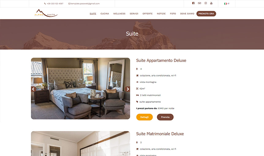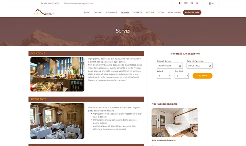 Alpen Suite Dolomiti è un modello Passweb personalizzabile e funzionale per gli hotel.