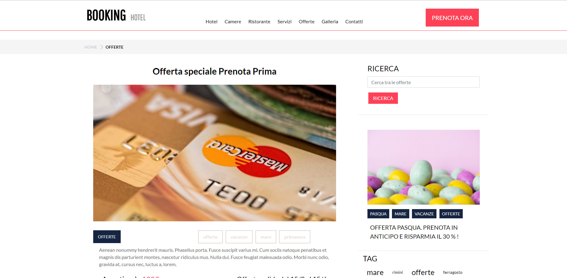 In aggiunta questo modello dispone di un form modulato con collegamento al booking engine e una sezione Offerte facile da gestire, tramite la quale pubblicare le offerte del tuo hotel.