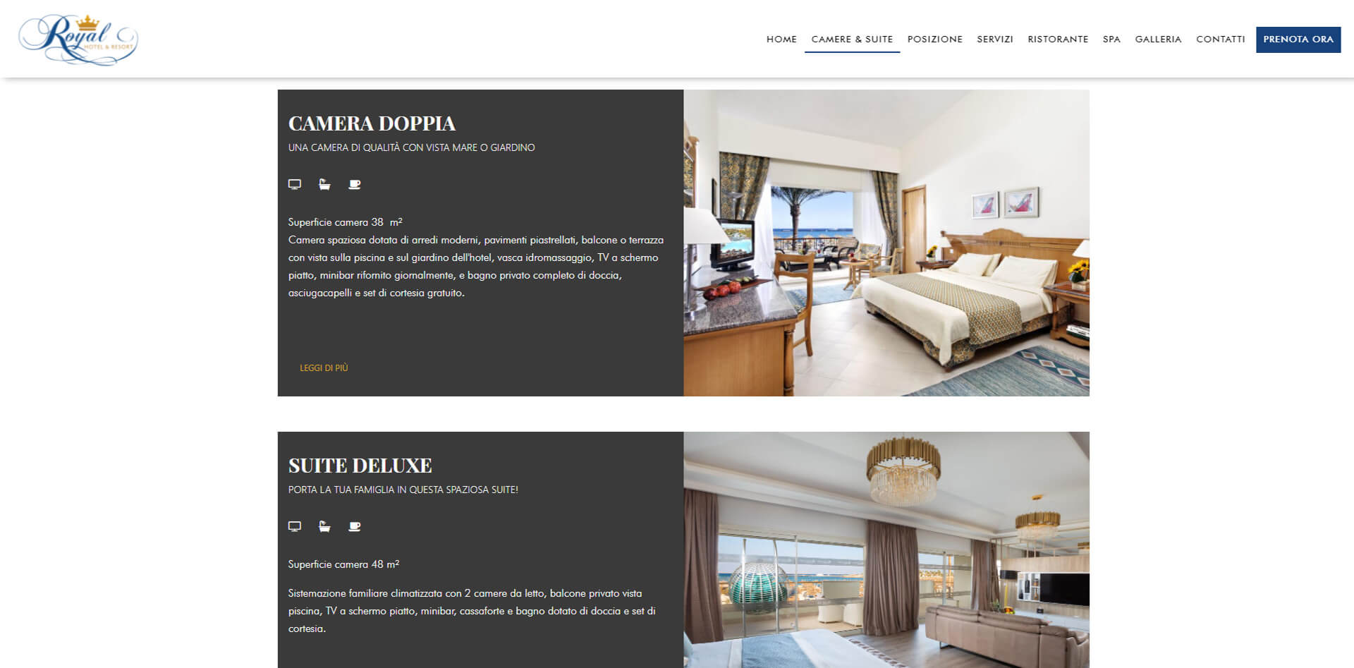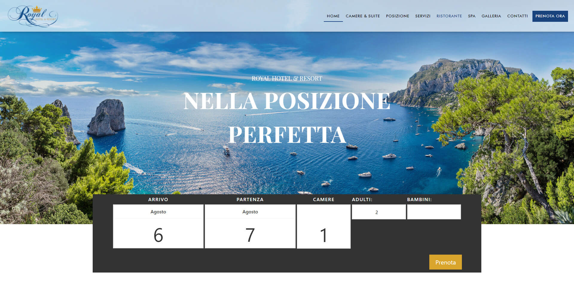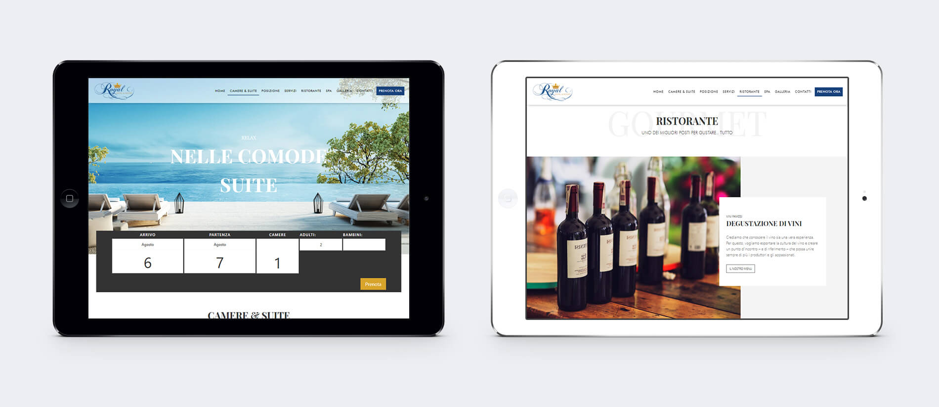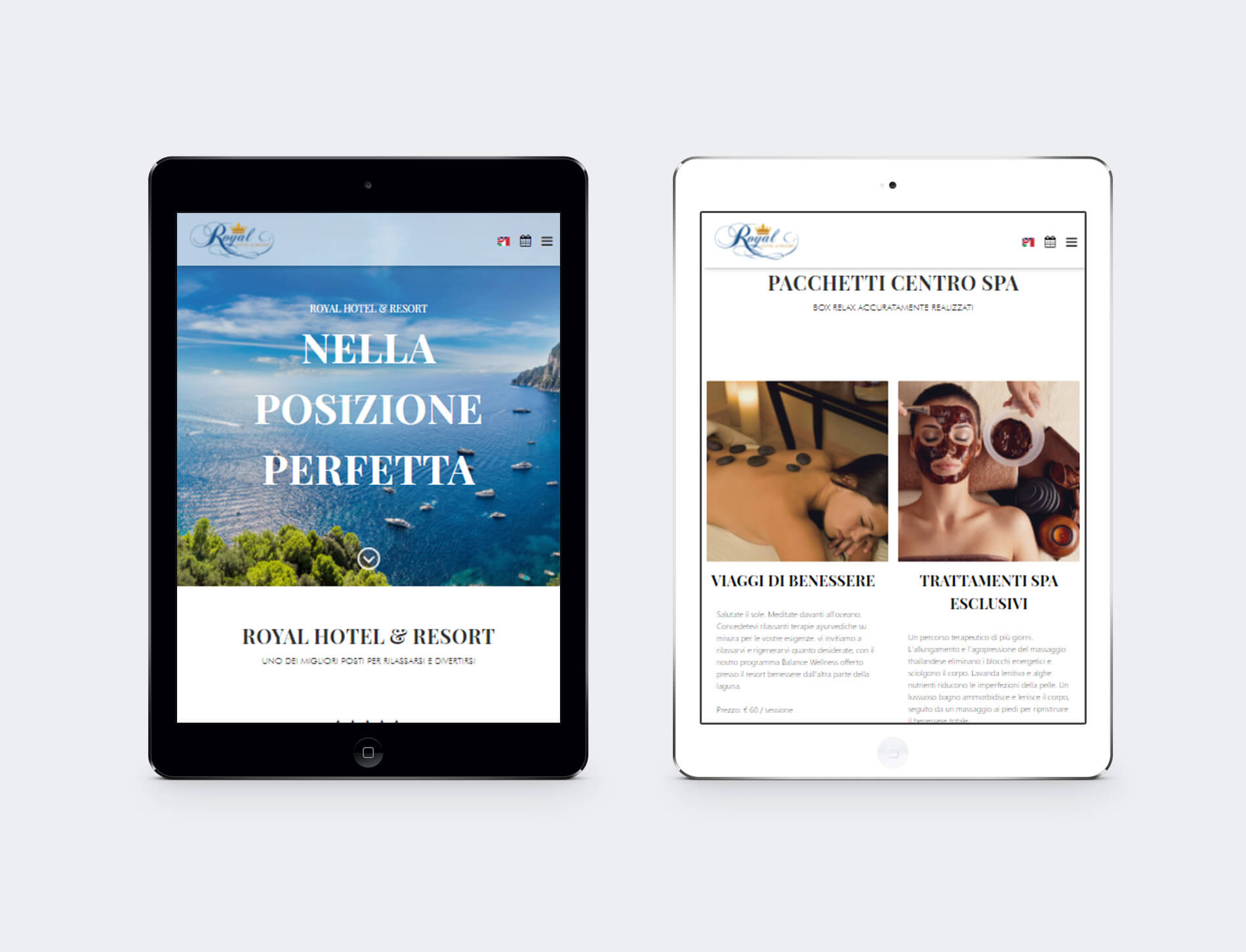 Royal Hotel & Resort è un modello Passweb personalizzabile e funzionale per gli hotel. Ha una grafica responsiva che permette un'ottima visualizzazione del sito su ogni dispositivo,