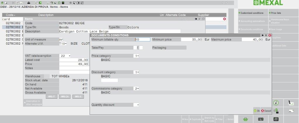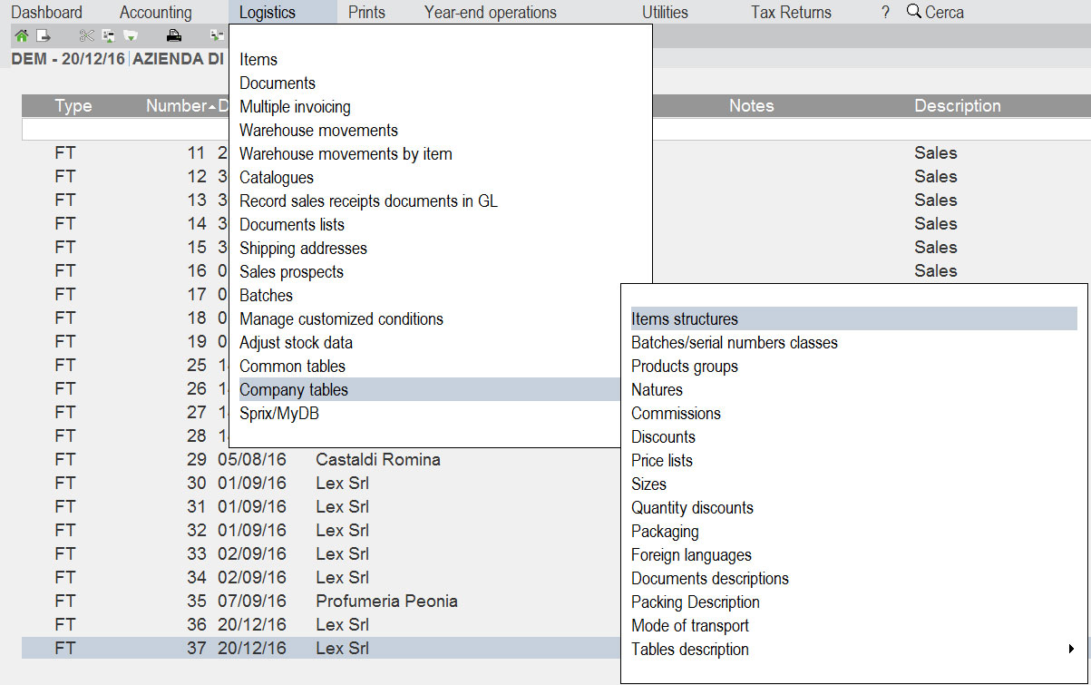 Nella versione 1.00 risultano tradotti: voci di menu, le funzioni Contabilità – Rubrica clienti/fornitori, Magazzino – Anagrafica articoli, Magazzino - Emissione/revisione documenti, la videata principale di Azienda – Apertura azienda e la videata principale di Azienda – Anagrafica azienda. Si possono inoltre già visualizzare tradotti termini in tutte le altre funzioni perché termini inseriti nel cosiddetto Dizionario generale.