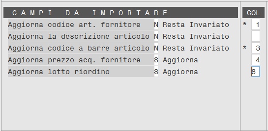 La procedura permette di importare o aggiornare il catalogo fornitore da file csv all'interno del gestionale. Prevede la possibilità di aggiornare contemporaneamente i listini di vendita a valore o a percentuale.