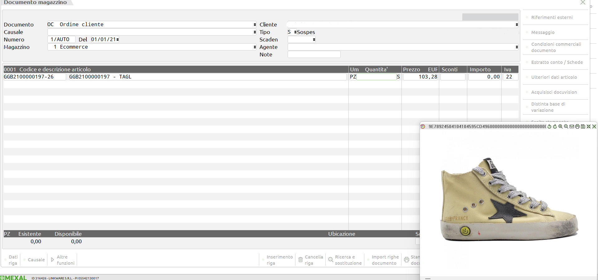 L'immagine importata può essere visualizzata sia nella anagrafica articoli che in emissione revisione documenti.