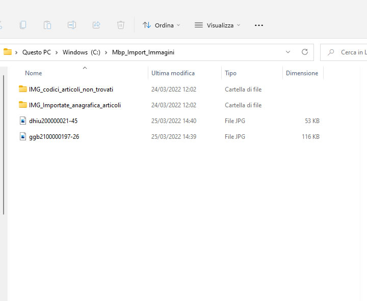 Per importare le immagini dei vostri prodotti in modo massivo è sufficiente salvare le immagini, con il nome del codice articolo, in una cartella predefinita.