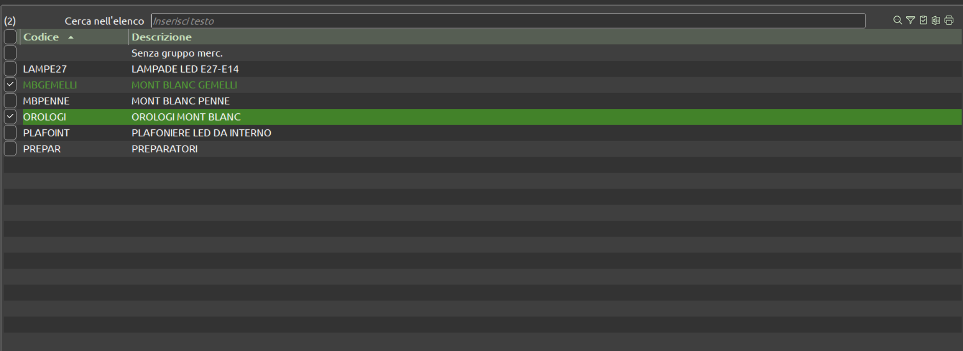 ü Albero categorie merceologiche