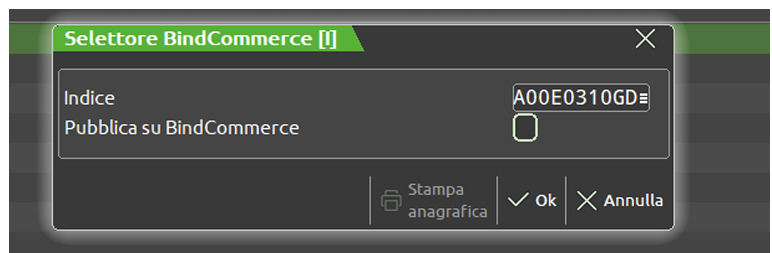 bindCommerce per lo scambio dati, in particolare invio informazioni relative
