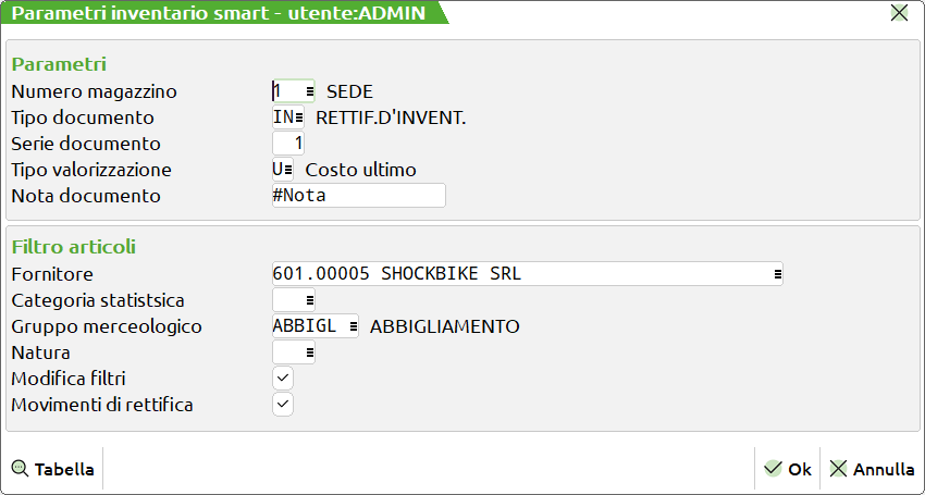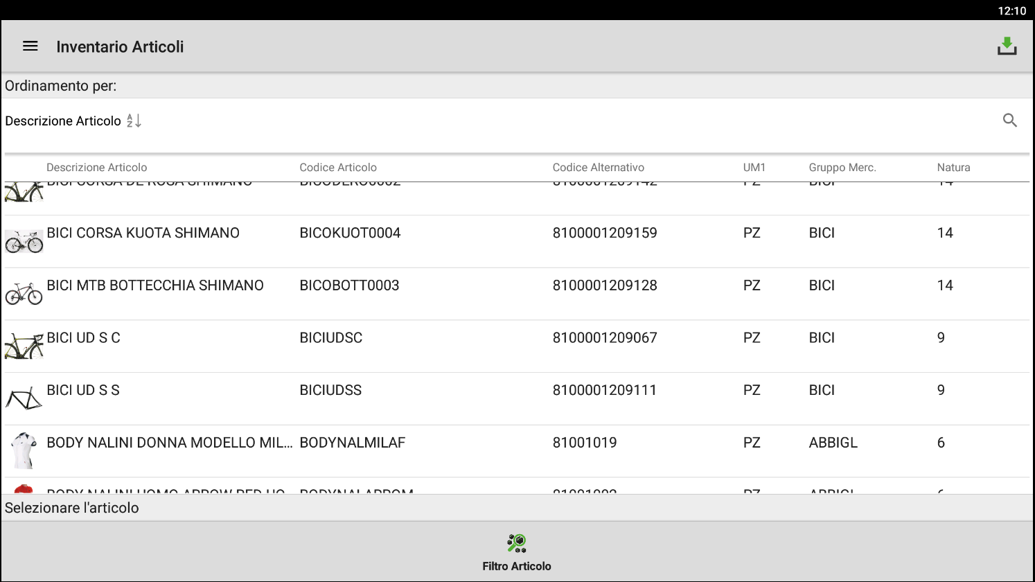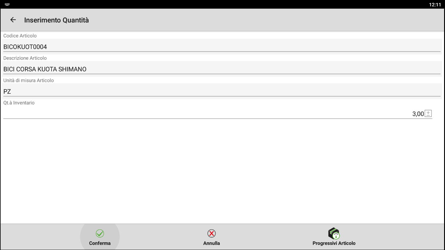 Dopo che si è terminato il caricamento dei dati è possibile valutare gli articoli censiti, modificare le quantità.