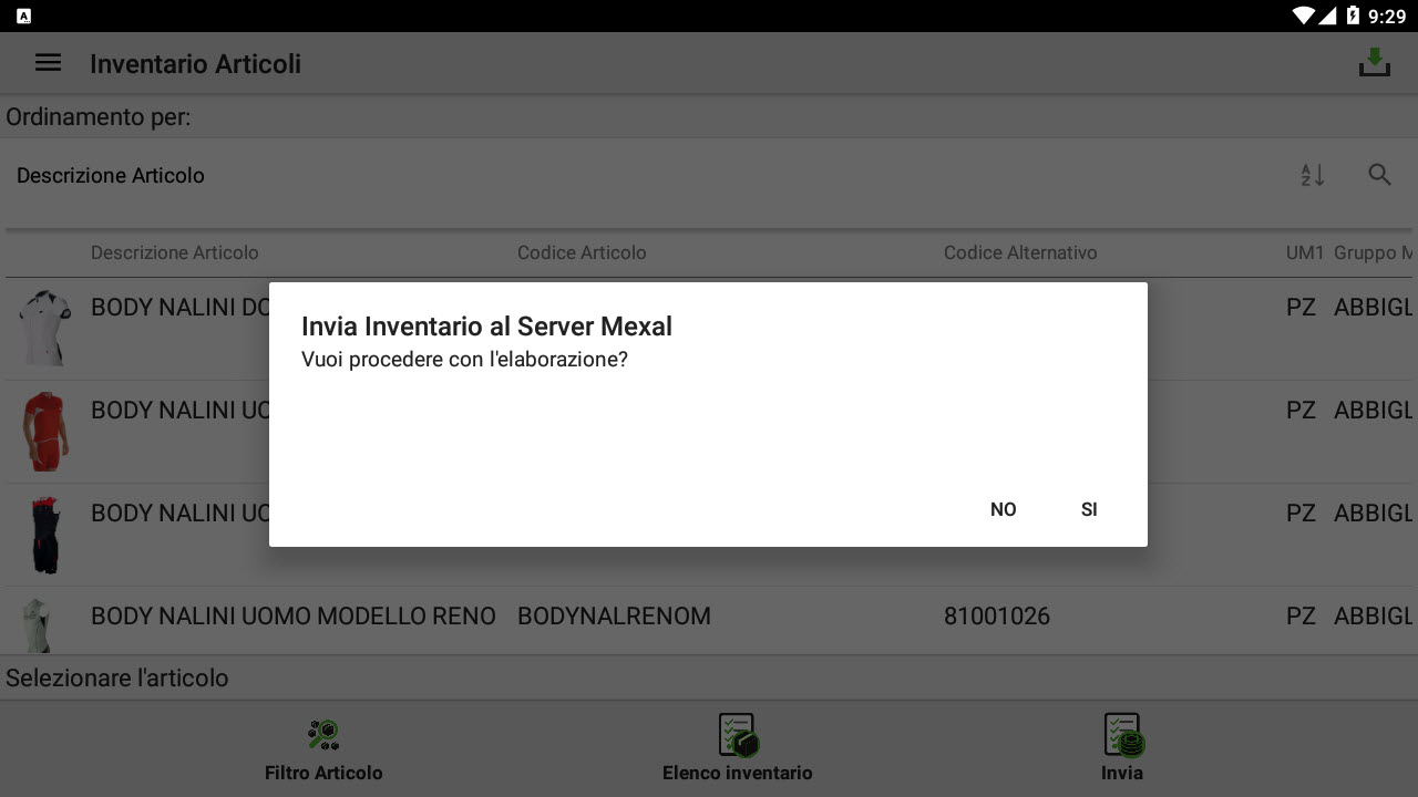 Terminate tutte le operazioni di inventario si inviano i dati al Gestionale Mexal.