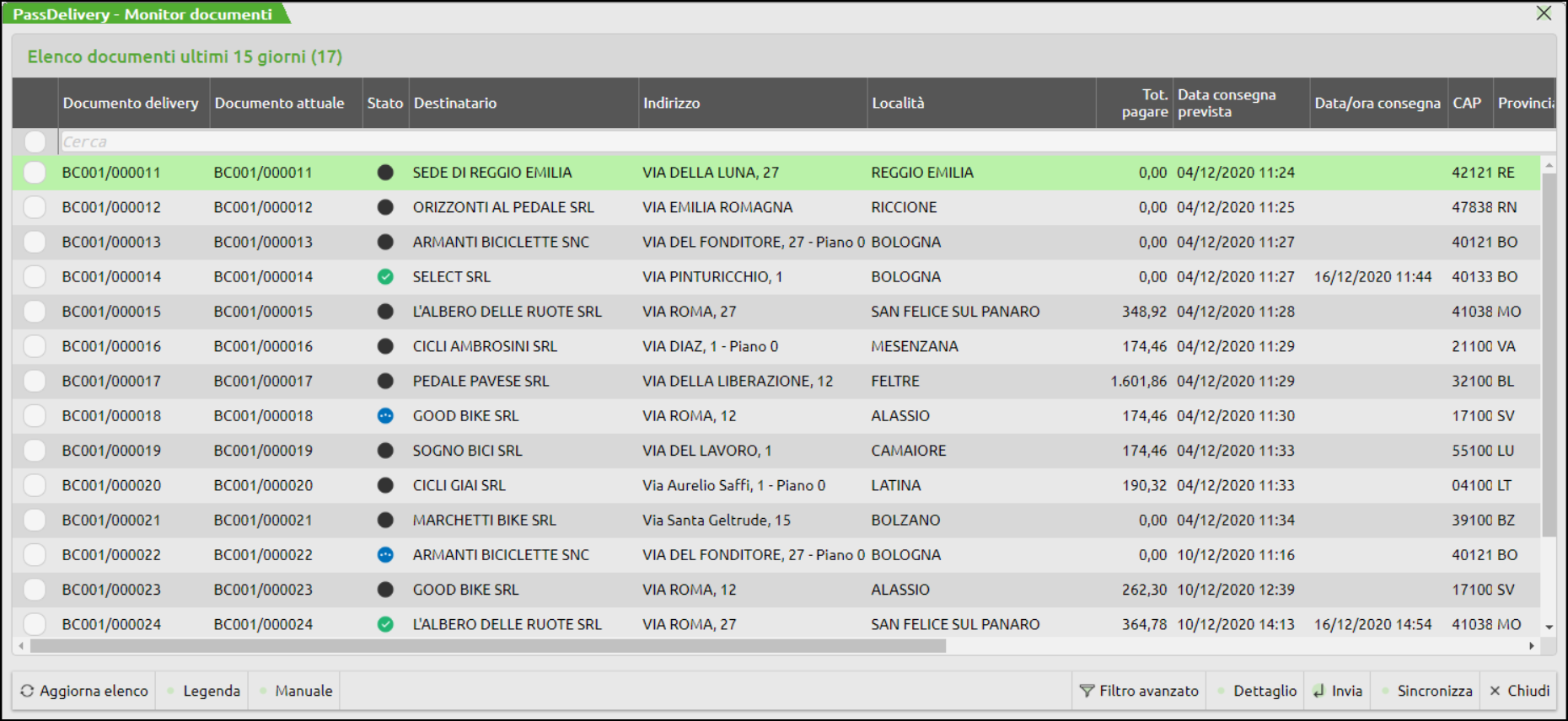 selezione dei documenti, consente di sincronizzare le attività di consegna