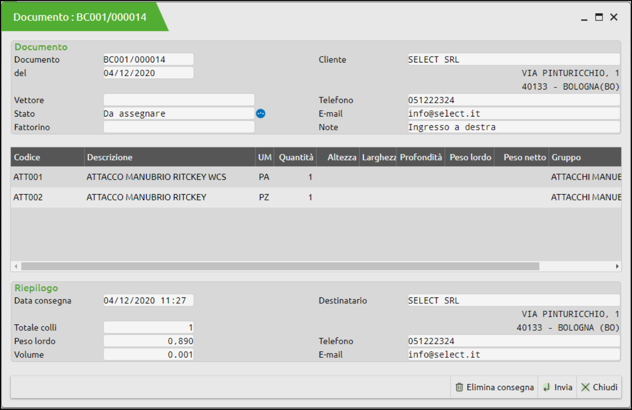 predisposto per la gestione delle consegne e successivamente ne consente il