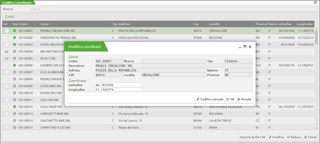 Le coordinate geografiche per clienti e fornitori si possono generare in automatico.