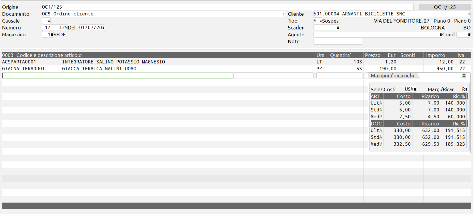 E’ possibile inoltre verificare sia il valore sia la percentuale di marginalità, scegliendo anche fra il margine o il ricarico.