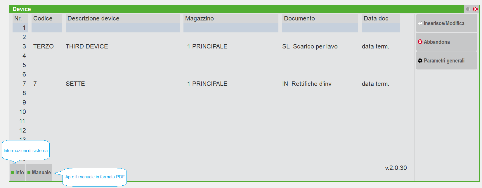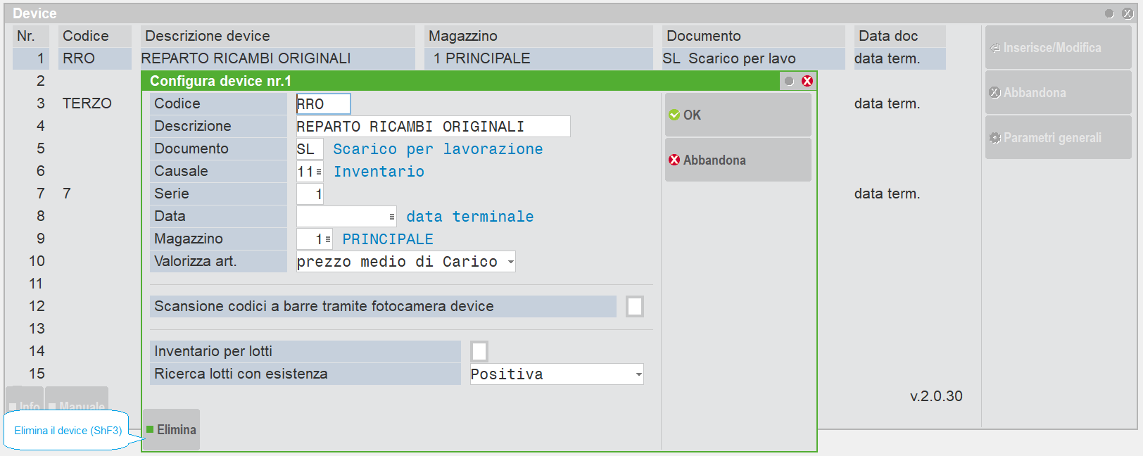 gestionale si configurano i devices virtuali; per ognuno di essi si definiscono