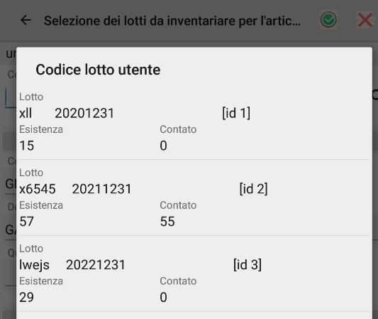 quantità contata per l’articolo (o la singola quantità per lotto), la