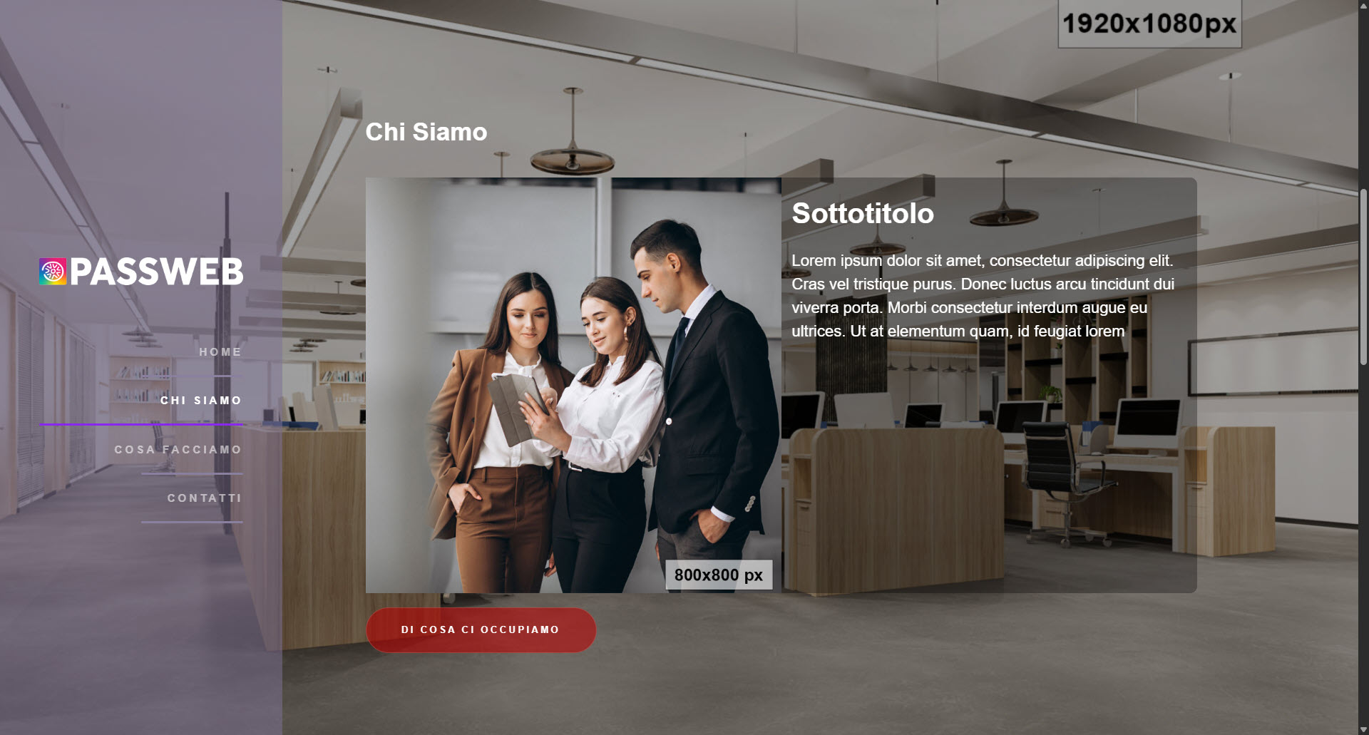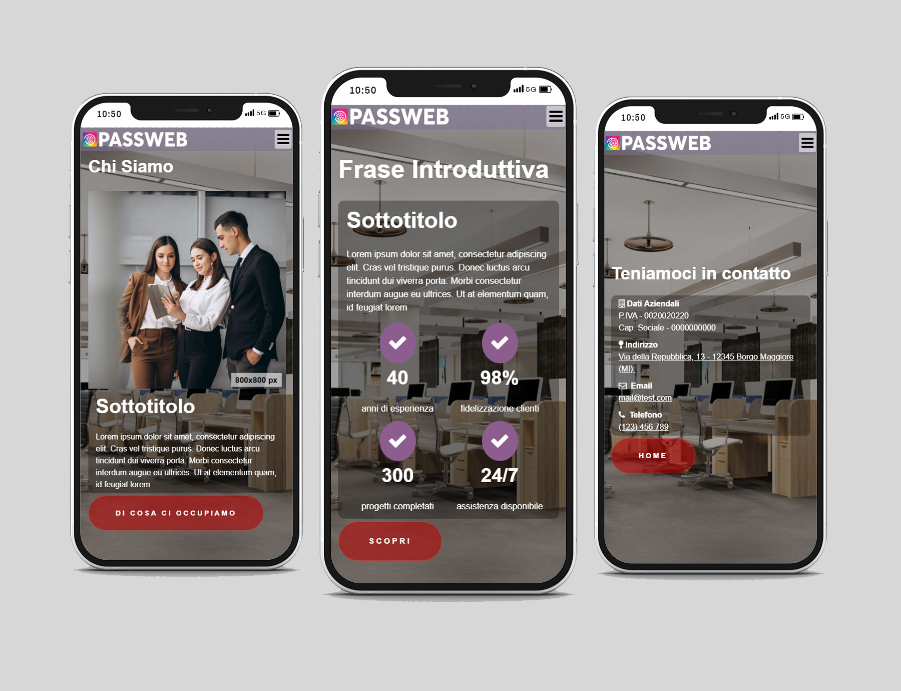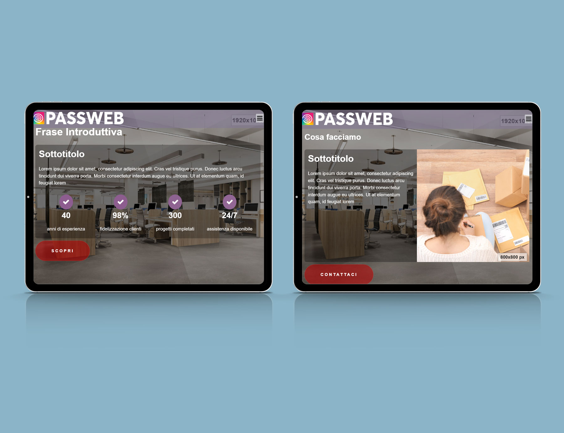 Progettato per i siti vetrina realizzati con Passweb, è la soluzione ideale per chi desidera essere online in tempi rapidi con una struttura chiara e funzionale.