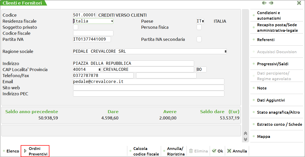 l'APP consente di accedere direttamente all'elenco dei Preventivi e degli Ordini dalla videata del programma Rubrica Clienti