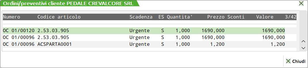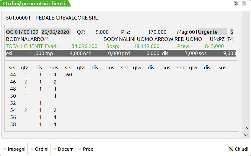 Vengono mostrati i valori di Ordinato, sia evadibile, sia sospeso. e Preventivi, in tempo reale.