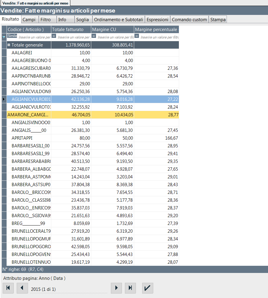 Il report permette di analizzare il fatturato e i margini sugli articoli