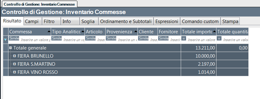 Il report permette di analizzare l’inventario delle commesse