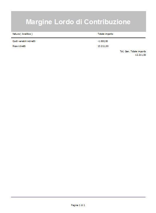 Il report permette di analizzare il Margine Lordo di Contribuzione col dettaglio dei costi e dei ricavi