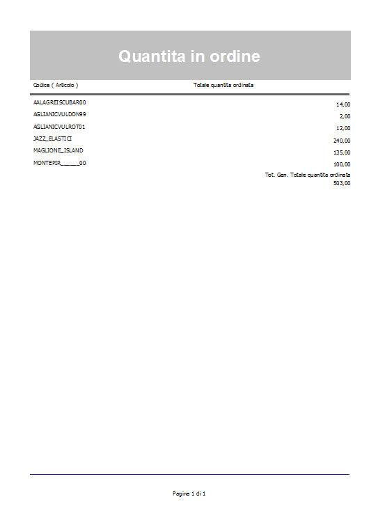 Il report permette di analizzare il totale quantità ordinata suddivisa per fornitore