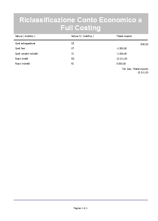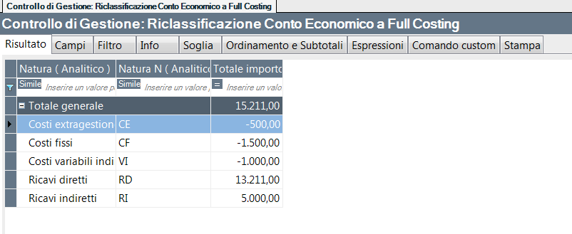 Il report restituisce una riclassificazione approssimativa per natura degli analitici movimentati