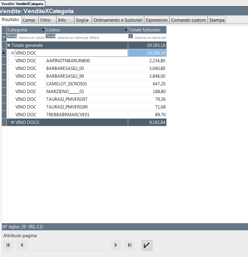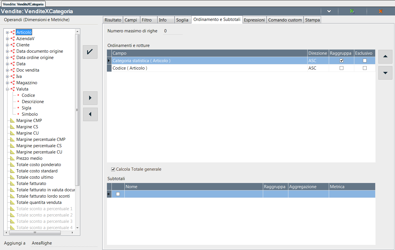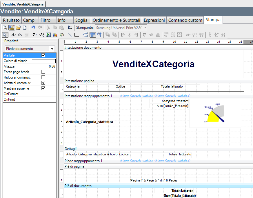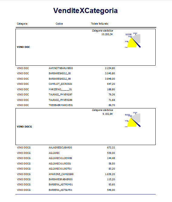 Report in cui viene riportato il fatturato per categoria statistica articolo.