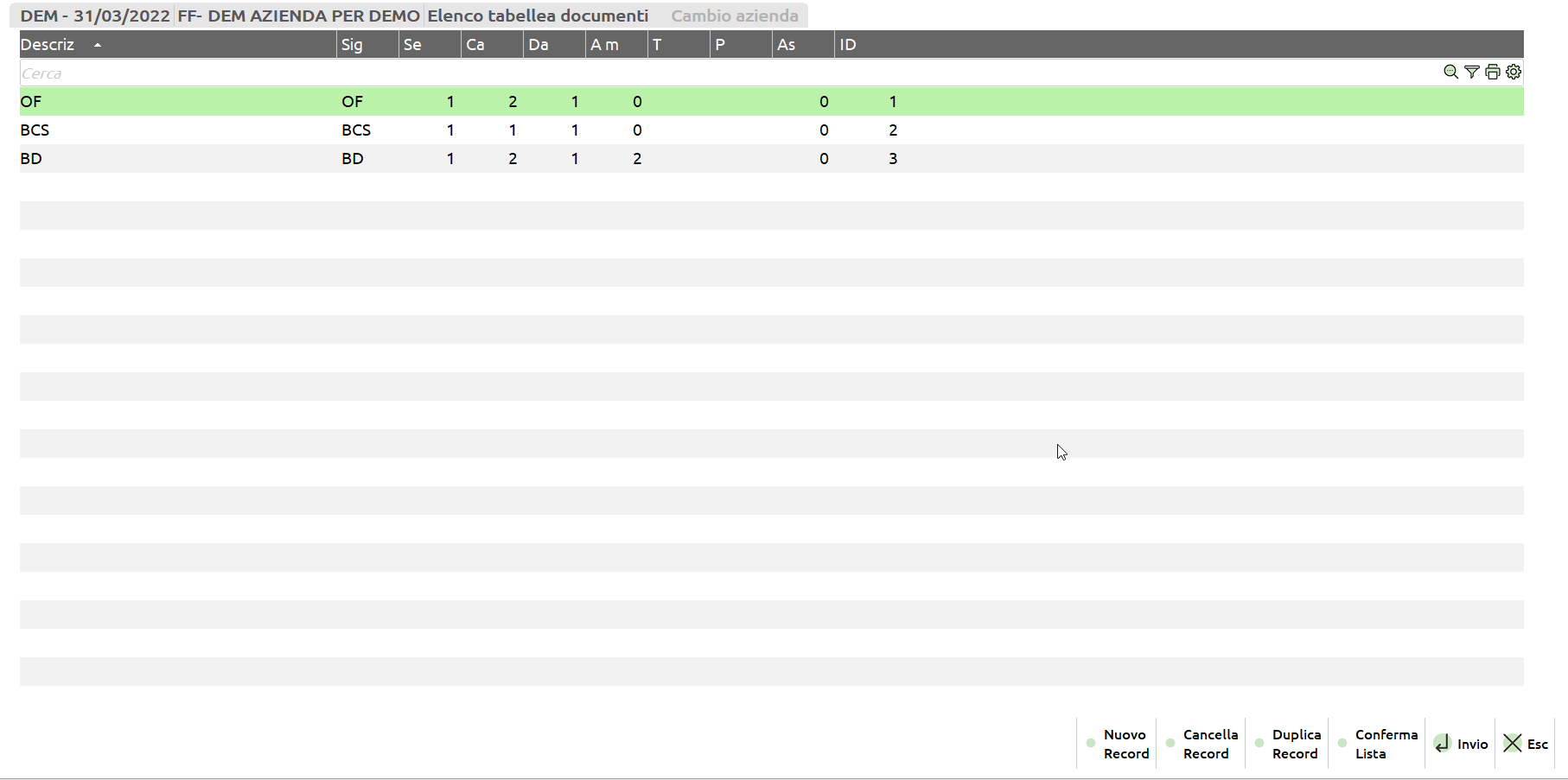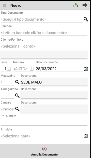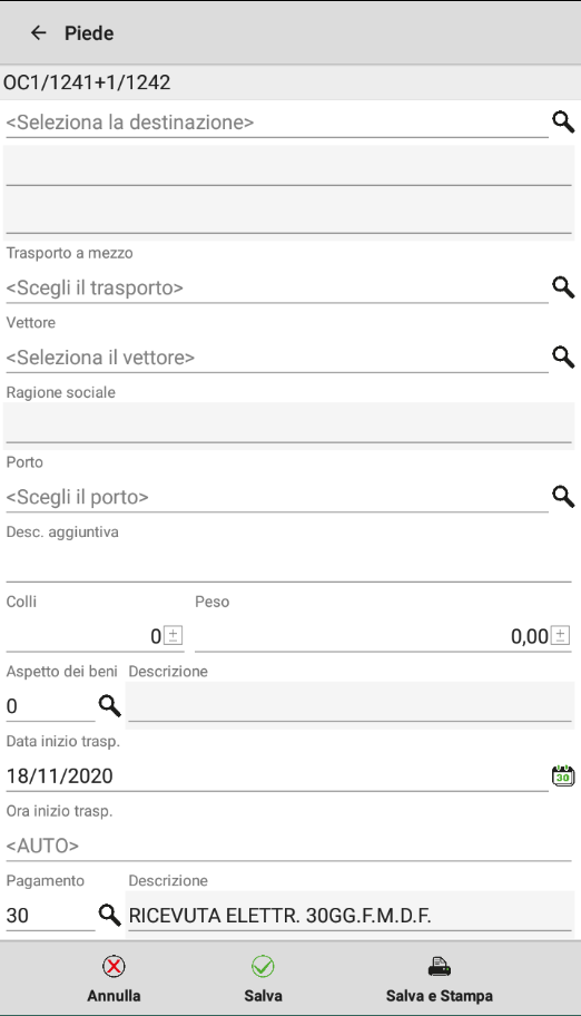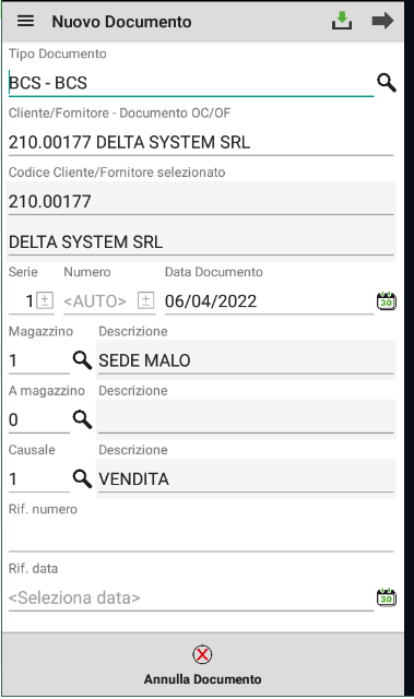 L'app permette di gestire tutti i documenti normalmente utilizzati in azienda, in particolare: OX OC MA PC BS BC FT NC NR OF MF PF BF FF NF RF BS BD DL SL CL PR