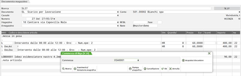 Alla conferma viene creato in Mexal un documento con sigla
