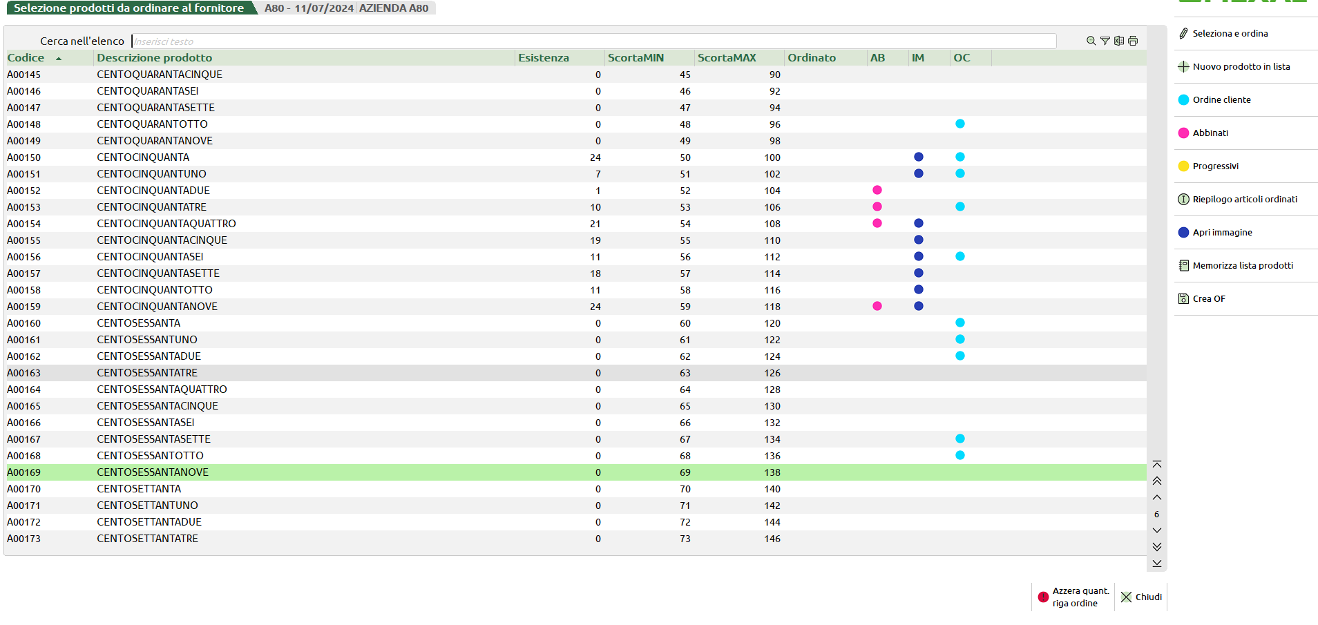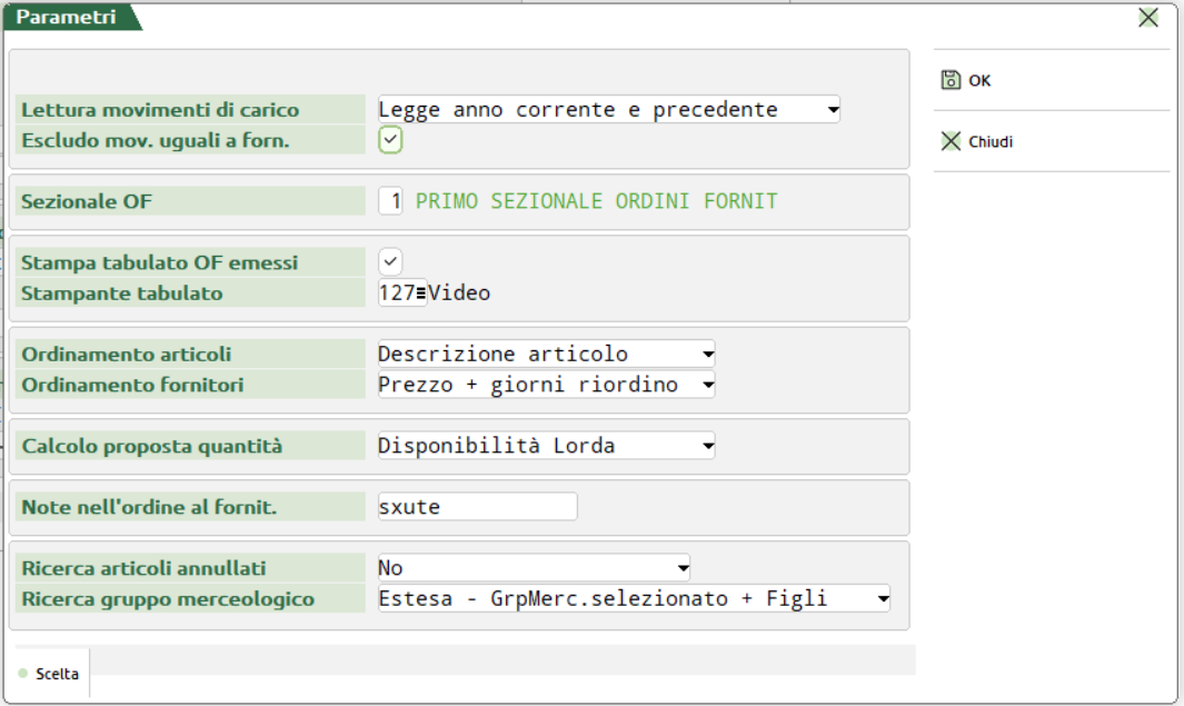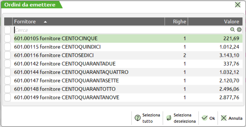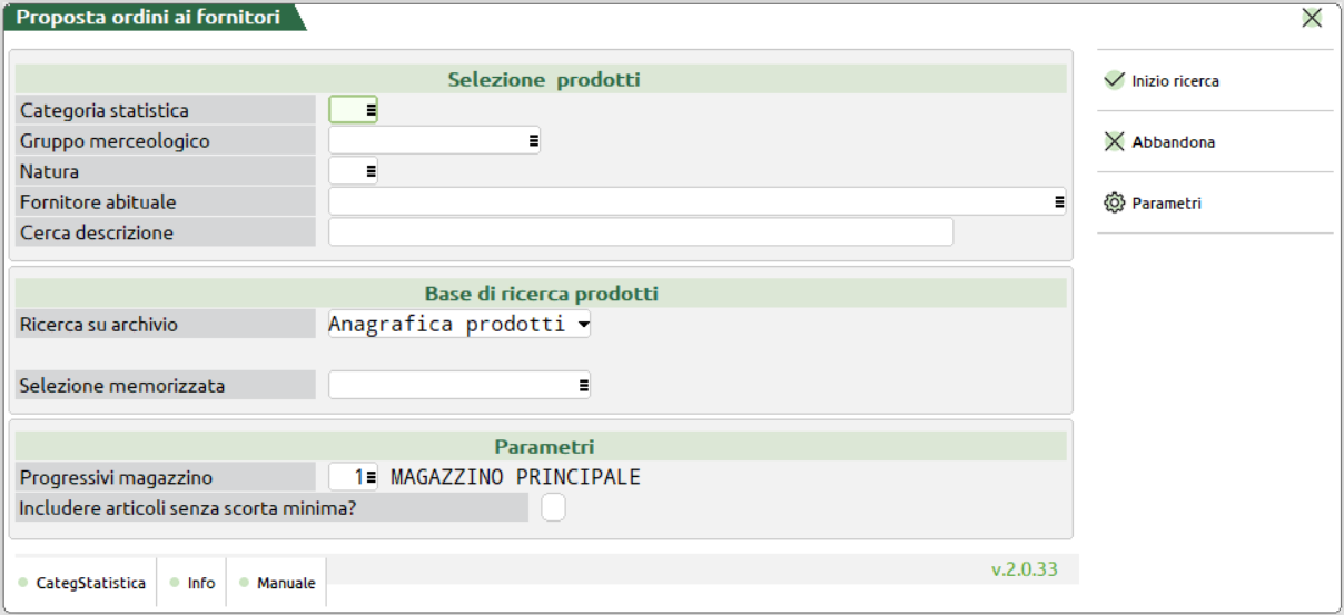 la preparazione degli ordini da inviare ai fornitori. Nella videata iniziale si effettua una