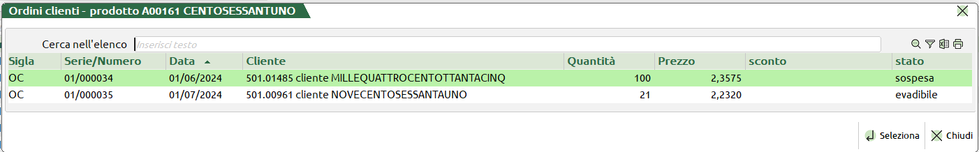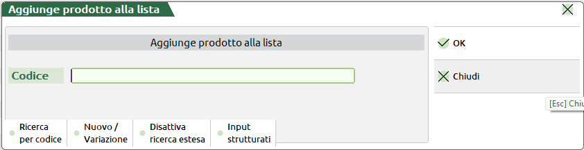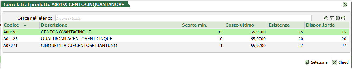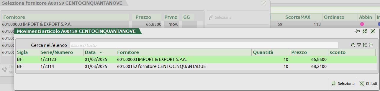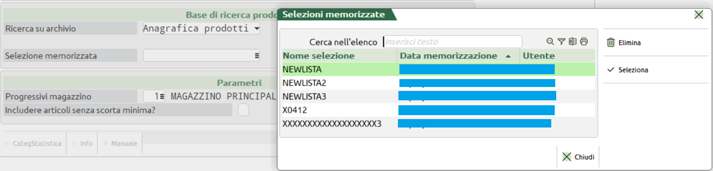 prima selezione degli articoli; nella successiva si definiscono i prodotti da