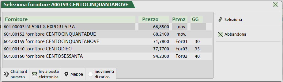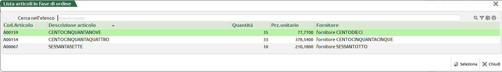 ordinare, il fornitore presso cui acquistare e le quantità desiderate. È possibile visualizzare gli articoli