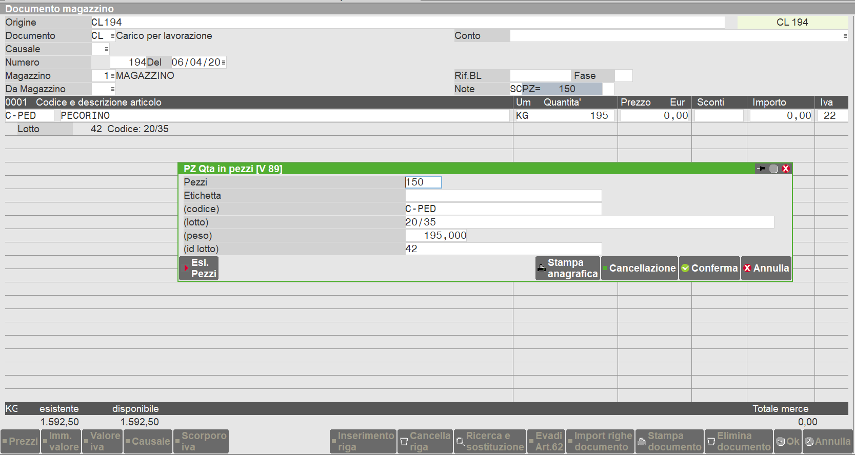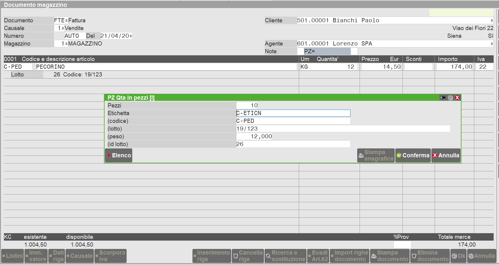 vendita della doppia unità di misura Kg/Pz su esistenza e lotti.