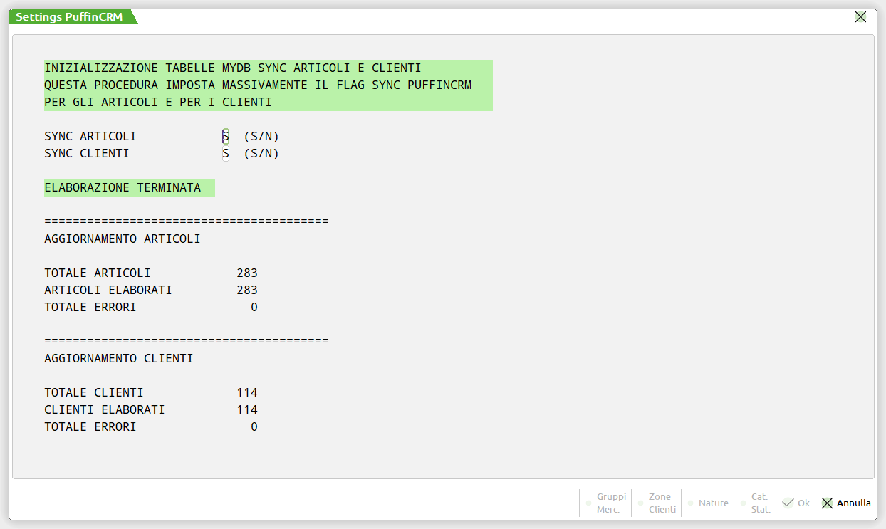 consente al CRM di sapere quali dati, in particolare anagrafiche clienti e articoli, mantenere
