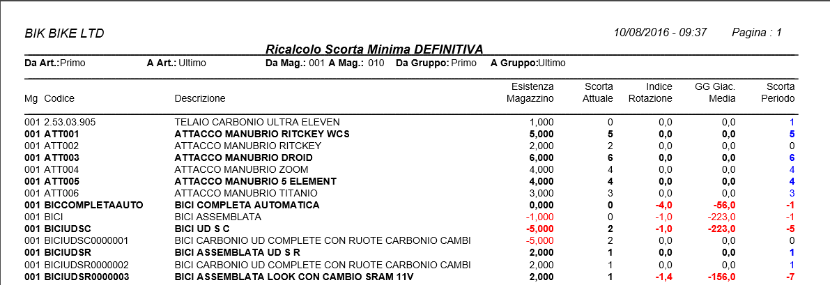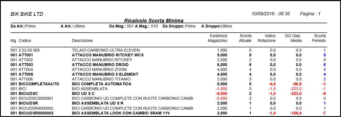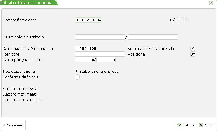 Applicazione che calcola la giacenza media e l'indice di rotazione delle scorte e della scorta media di un periodo dall'apertura dell'esercizio. Consente di aggiornare il valore di "scorta minima" nei progressivi articolo.