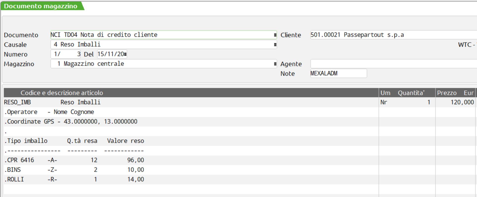 modulo RITIRO IMBALLI permette all'operatore di verificare la situazione 'imballi