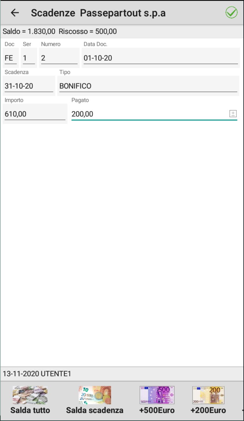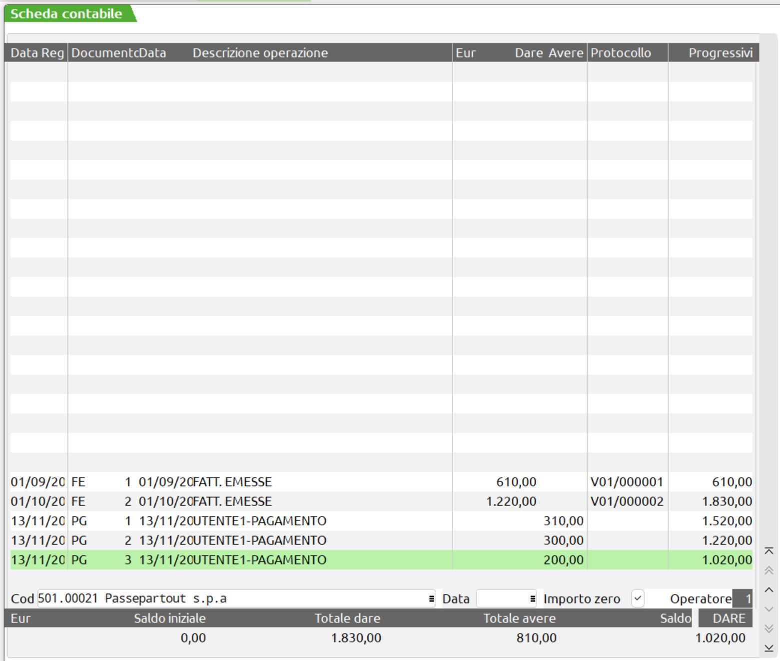 permette all'operatore di verificare il saldo contabile e le scadenze attive,