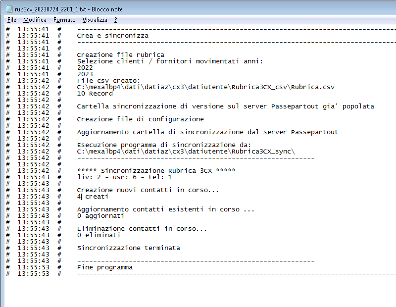 file Csv con i dati provenienti dal gestionale e Sincronizzazione della rubrica