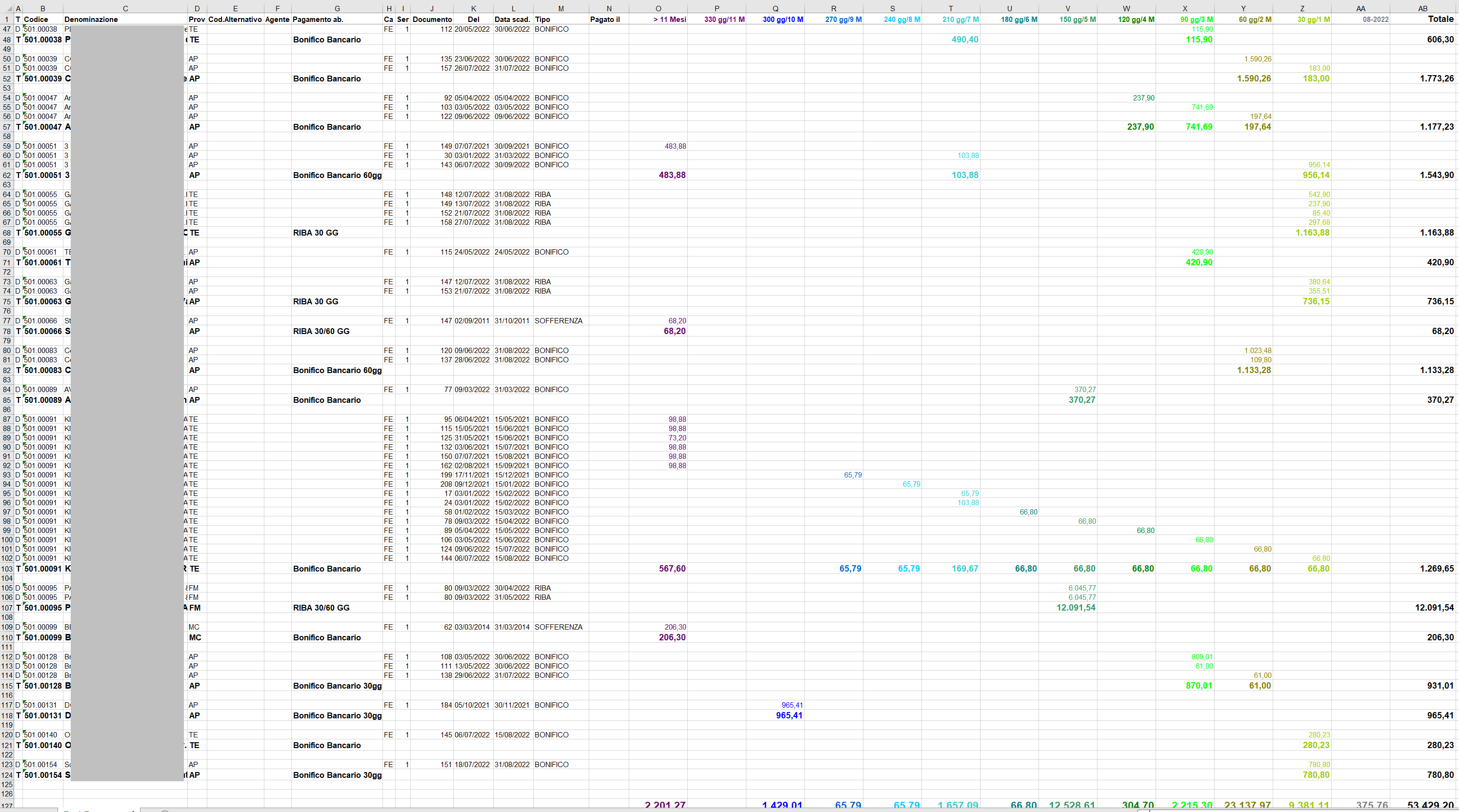 Aggiunti alla riga dei progressivi i dati relativi alle posizioni che precedono la data di riferimento escludendo dal calcolo di questi i crediti.
