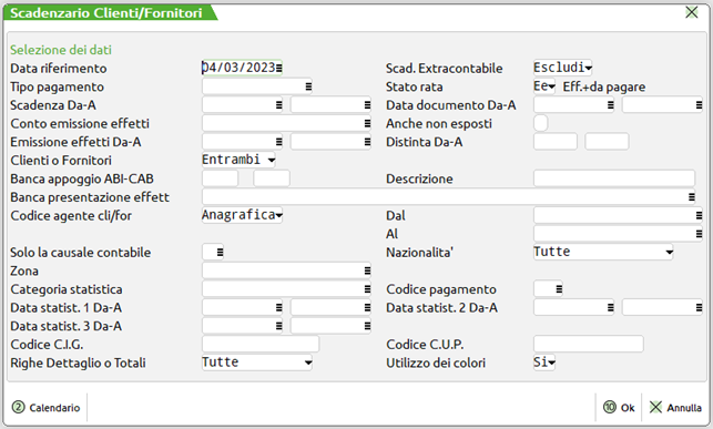 2.2.0 - Modificate selezioni di default per Scad.Extracontabile = Escludi, Stato rata = Ee, Clienti/Fornitori = Entrambi
