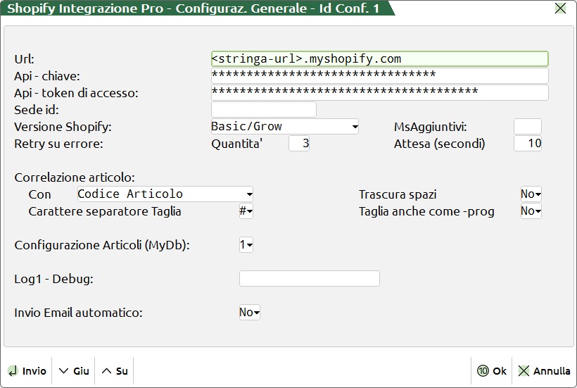 Aggiunta la possibilità di non considerare gli spazi nella correlazione dell'articolo tra gestionale e Shopify. Aggiunta la possibilità di attivare l'ulteriore metodo di indicazione della taglia nello Sku Shopify come -progressivo (progressivo taglia della serie del gestionale).