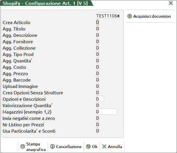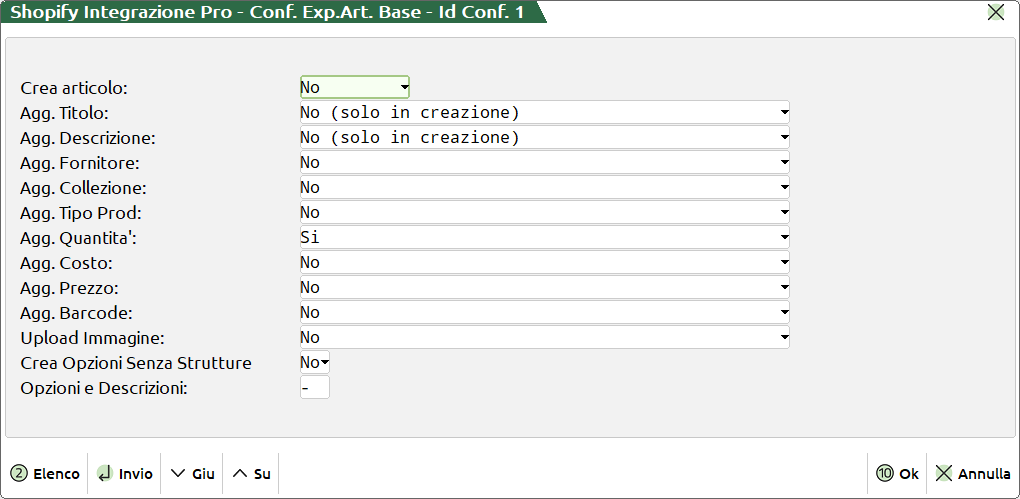 Export Articoli, per i campi gestiti, possibilità di aggiornamento del dato solo in fase di creazione prodotto su Shopify.