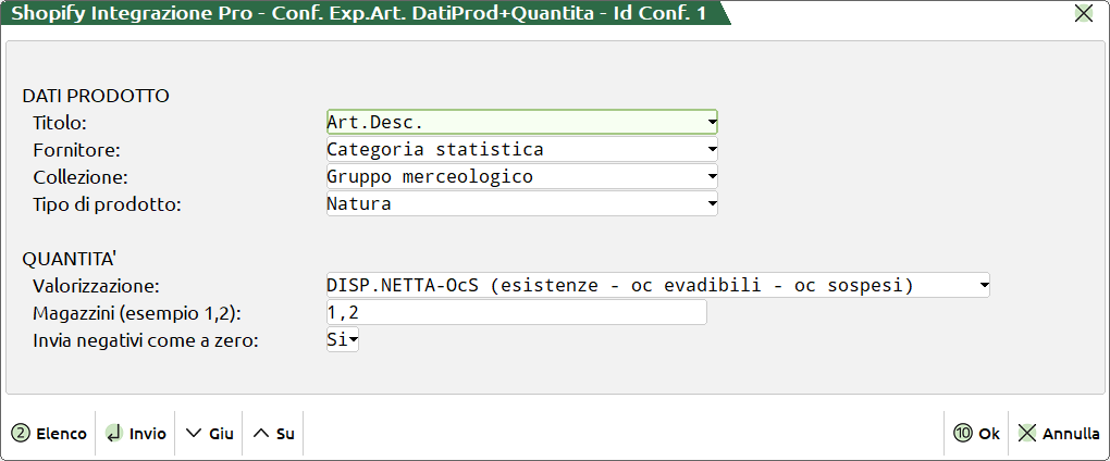 Possibilità di impostare differentemente per ogni articolo 1) il progressivo per l'invio della quantità 2) uno o più magazzini per invio delle quantità ed import ordine (con eventuale gestione del Magazzino sulla Riga) 3) l'invio di quantità negativa come zero 4) il listino prezzi