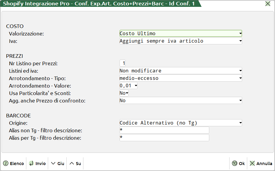 Export Articoli, funzionalità di aggiornamento Barcode su Shopify, proveniente da Codice Articolo, oppure Codice Alternativo, oppure tramite gli Alias (anche per Taglia).